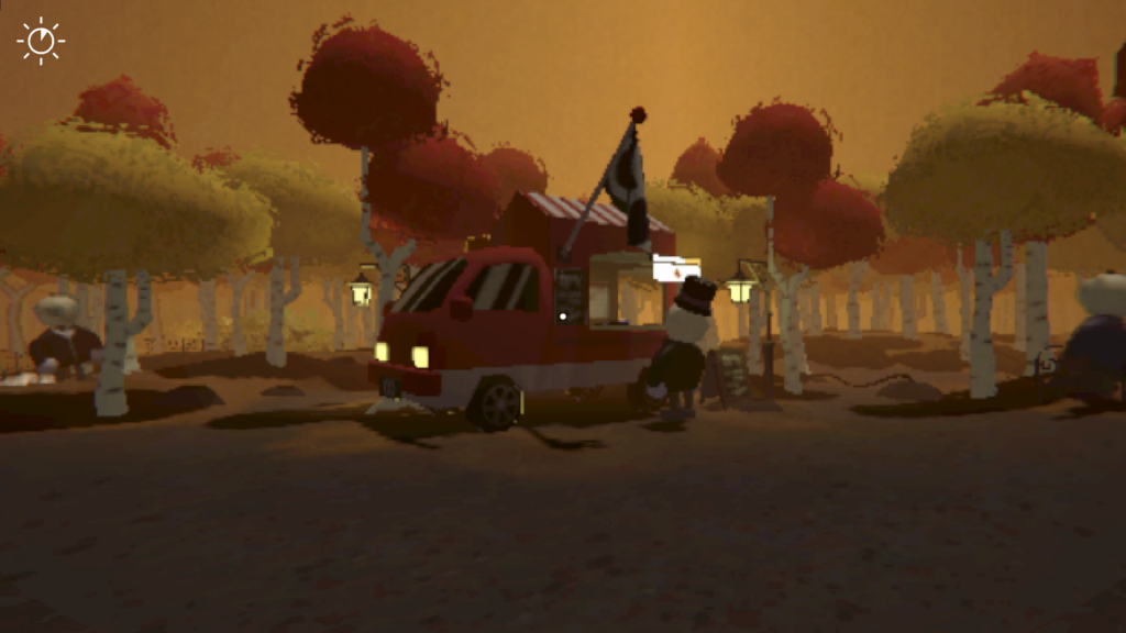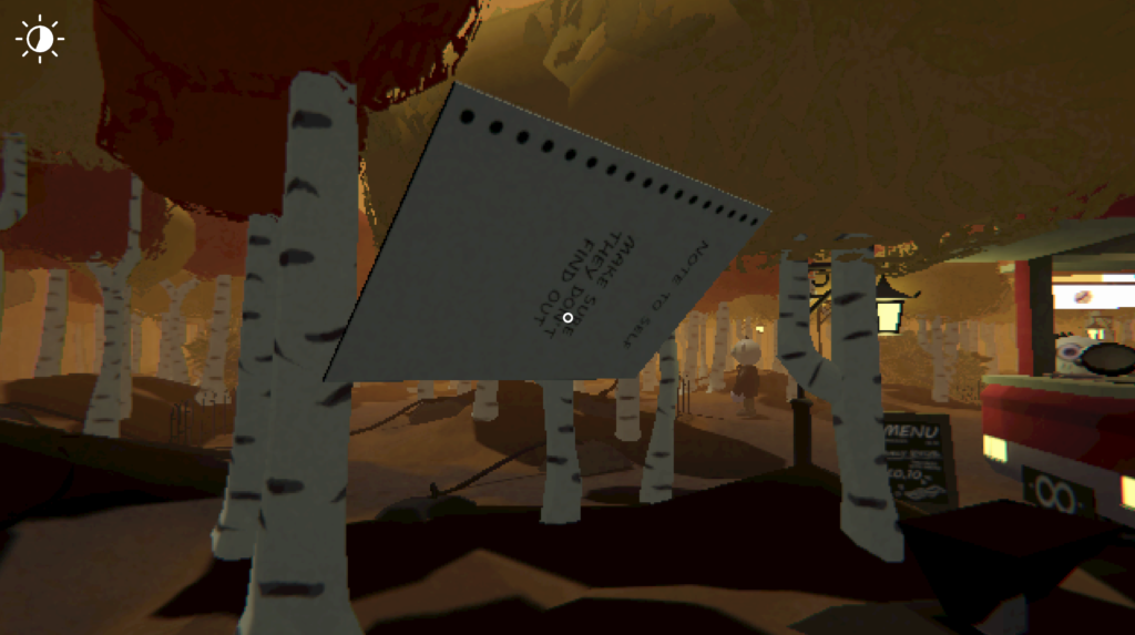 As the player starts to recognize this pattern, the opportunity arises to plan ahead by preparing orders in advance. The time gained in this way can then be used to explore the environment and gradually uncover the secret behind this repeating world.