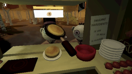 The player works at a pancake stand and makes pancakes every day for passing customers. What is not immediately noticeable at first is that each day unfolds in exactly the same way. The same NPCs walk by at precisely the same moments and place the same orders every time.
